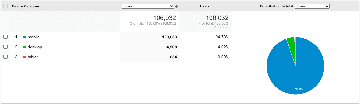 Google analytics: 94.78% of U-Turn users use mobile devices.