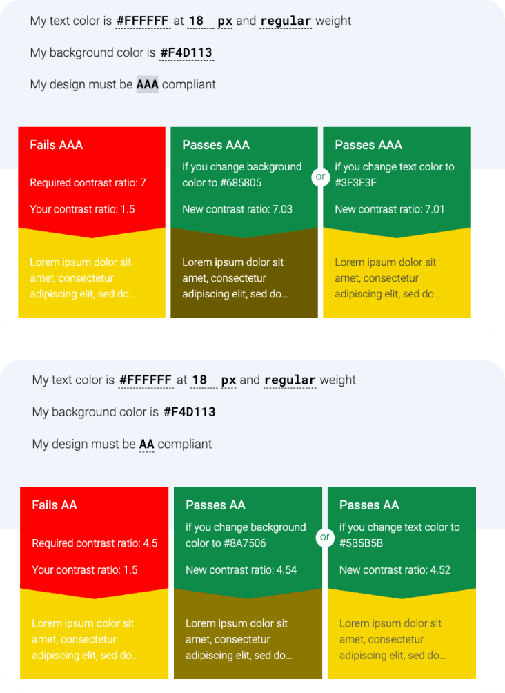 I noticed a significant issue with the contrast of the CTA because of the use of white text on yellow backgrounds. The design failed both AA and AAA standards. So, I recommended changing the text color to black.