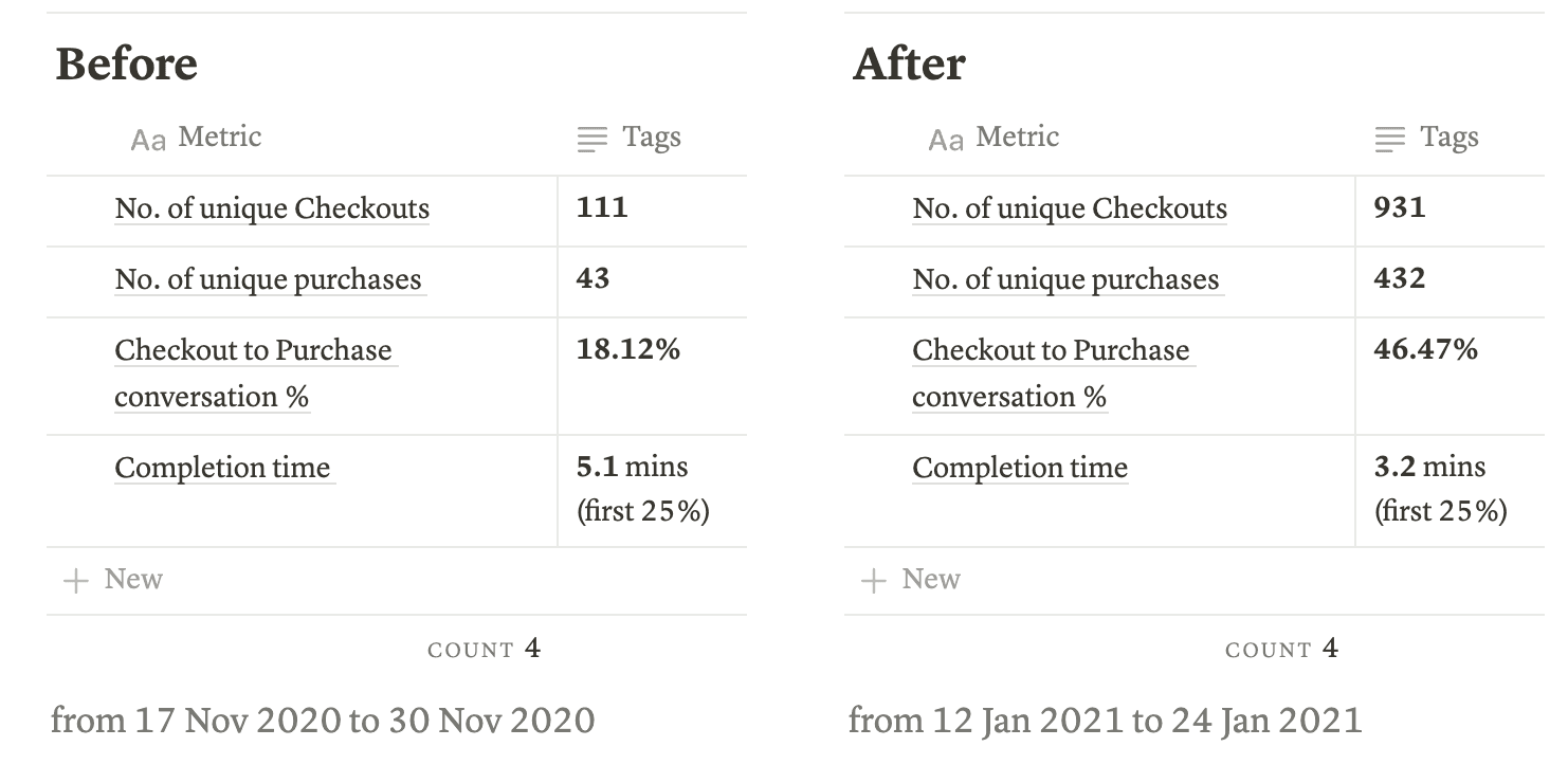 After implementing the improvements on U-turn’s checkout page, we observed: